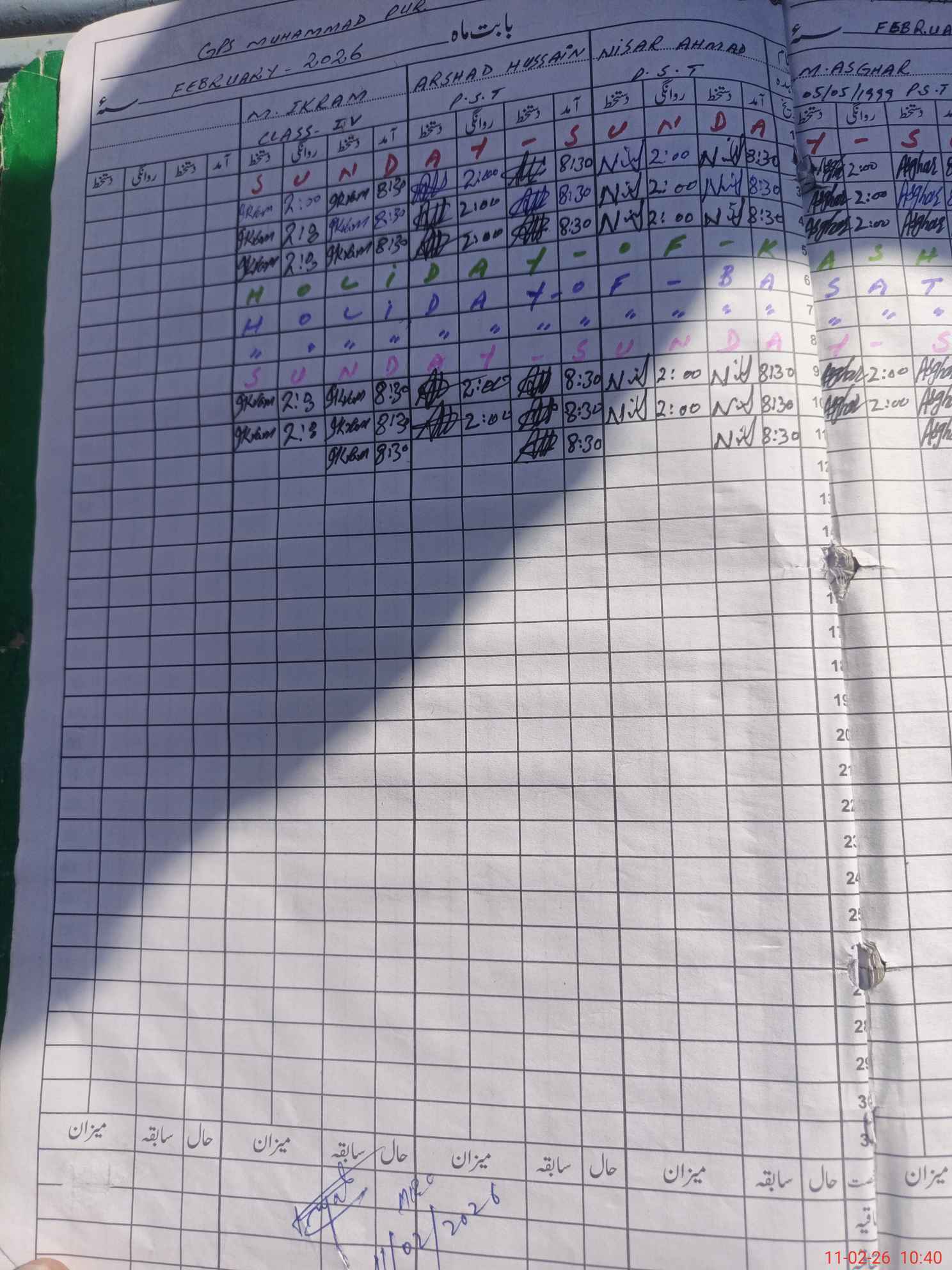 | CNIC | Full Name | Designation | R/C | Absence During Last Calender Month |