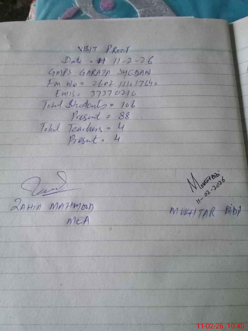 | Monitoring Date: 11-02-2026 | Start Time: 11-02-2026 10:17 AM | End Time: 11-02-2026 10:42 AM | Name of MEA: Za**** Me**** | |