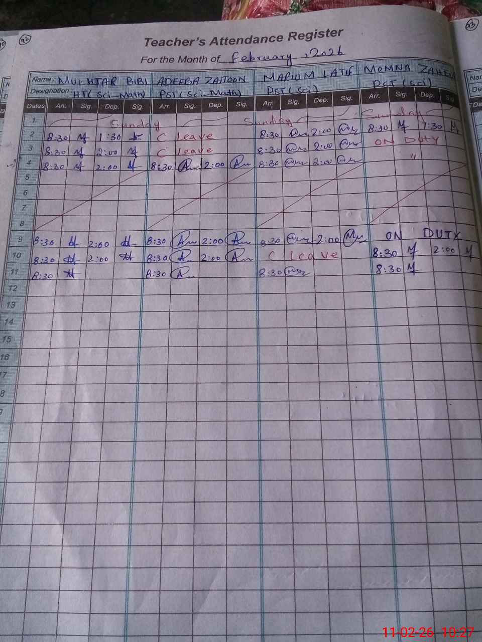 | Name: Mu**** Bi**** Designation: (School Headmaster's/Headmistress's) PST (Sci Math) Phone/Cell Number: 03**** |
