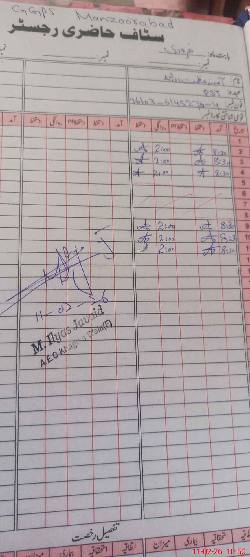 | Name: If**** Bi**** Designation: (School Headmaster's/Headmistress's) PST Phone/Cell Number: 03**** |