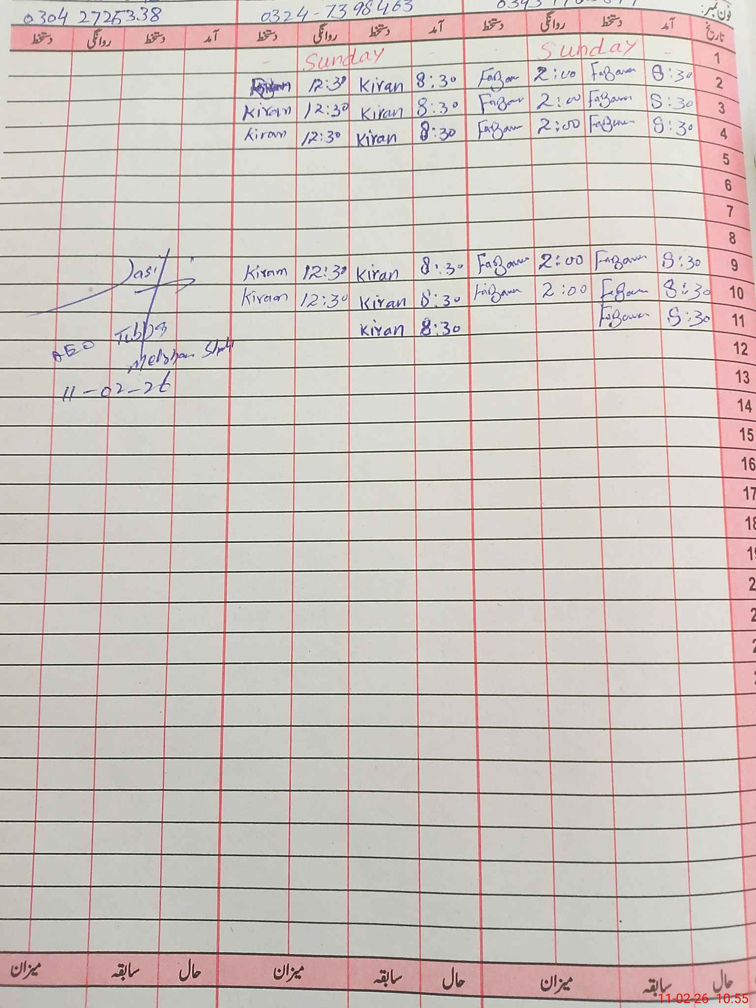 | CNIC | Full Name | Designation | R/C | Absence During Last Calender Month |