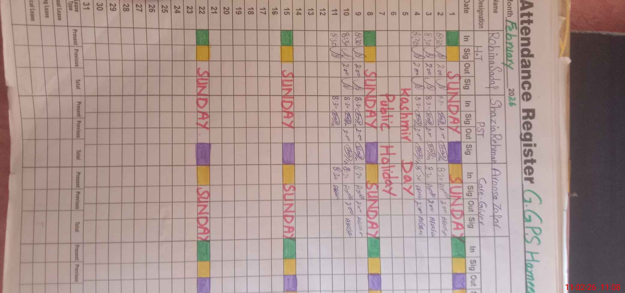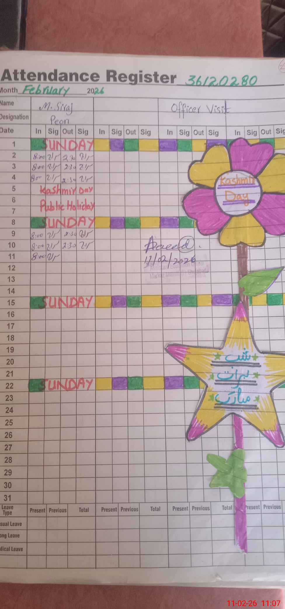 | CNIC | Full Name | Designation | R/C | Absence During Last Calender Month |