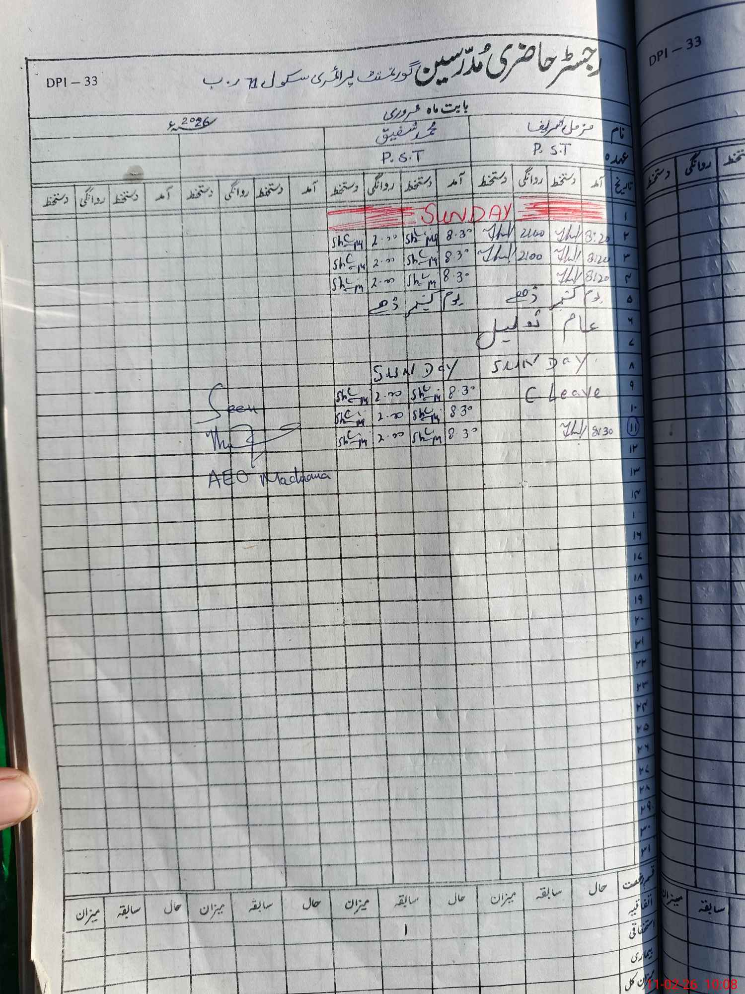 | CNIC | Full Name | Designation | R/C | Absence During Last Calender Month |
