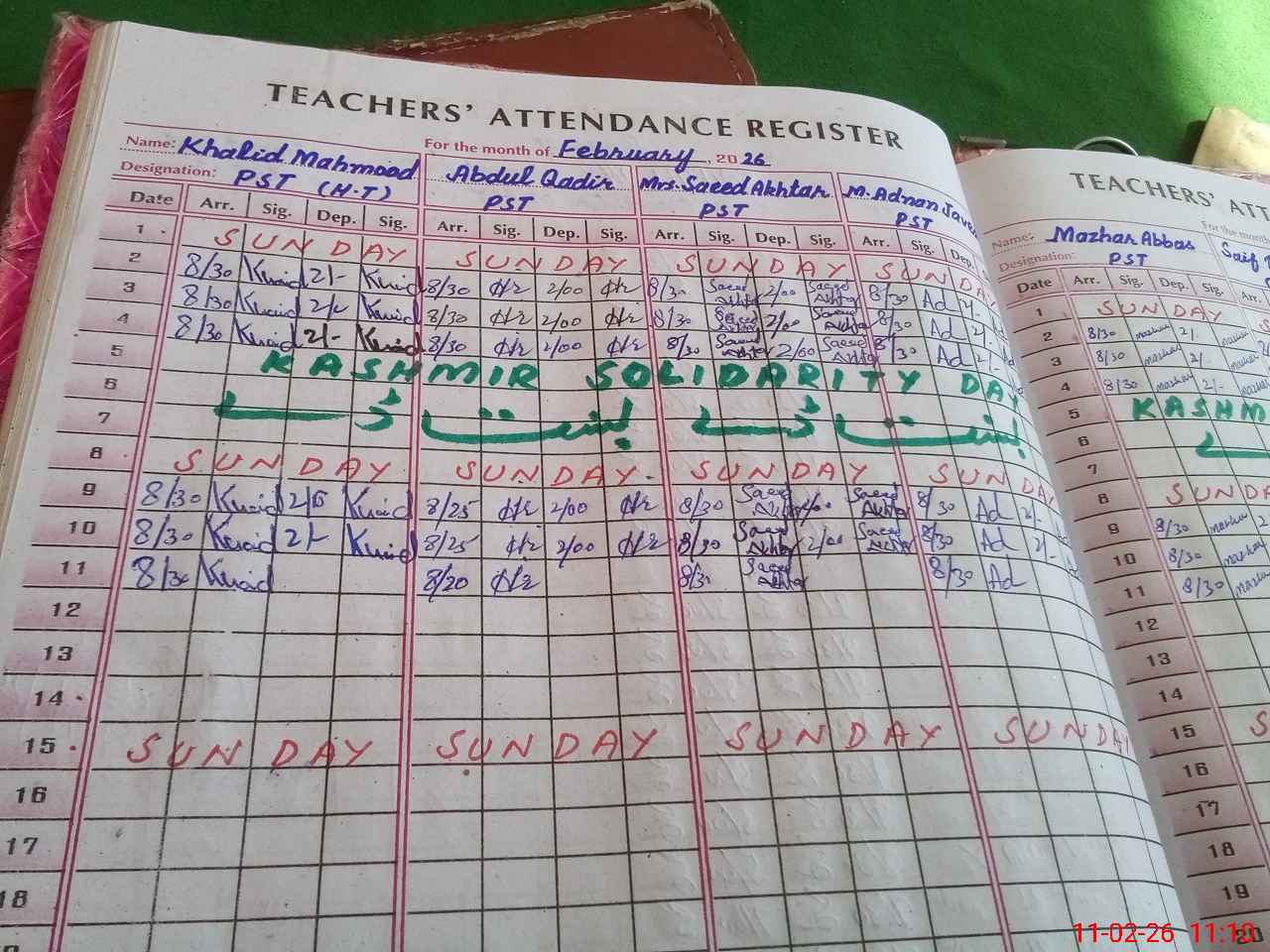 | Monitoring Date: 11-02-2026 | Start Time: 11-02-2026 11:03 AM | End Time: 11-02-2026 11:21 AM | Name of MEA: Qa**** Ka**** Kh**** | |
