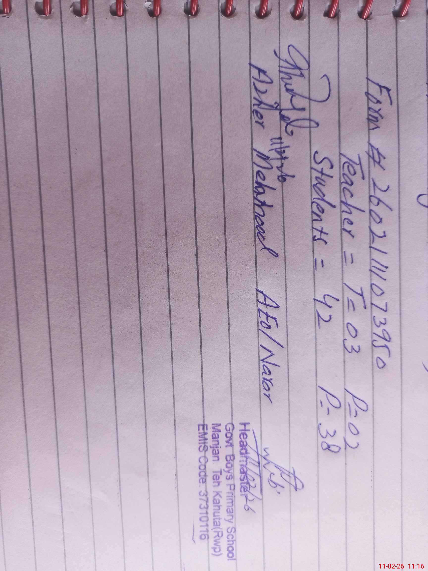 | Attendance Register | Head Teacher | MEA with School | Visit Proof |
