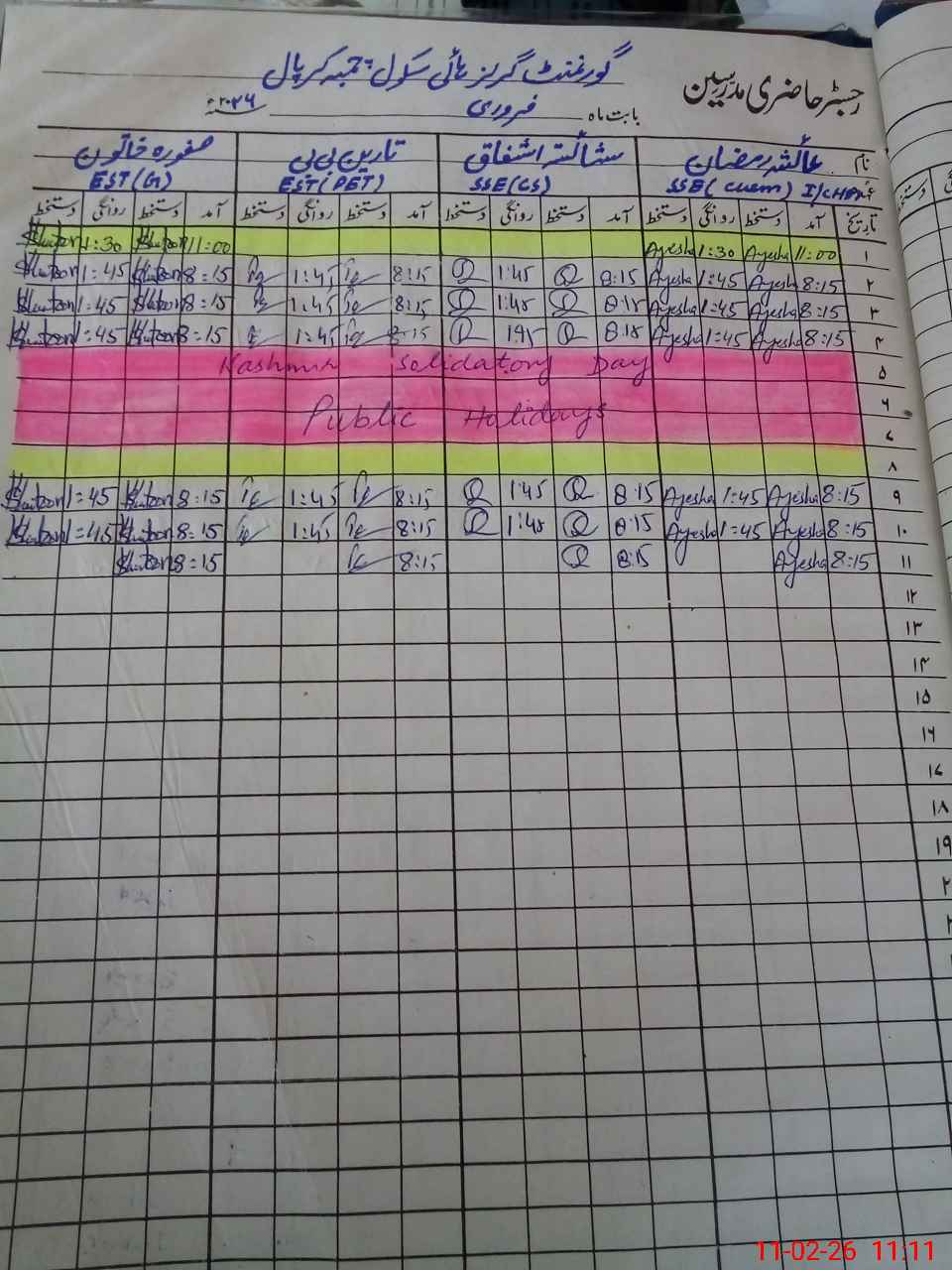 | CNIC | Full Name | Designation | R/C | Absence During Last Calender Month |