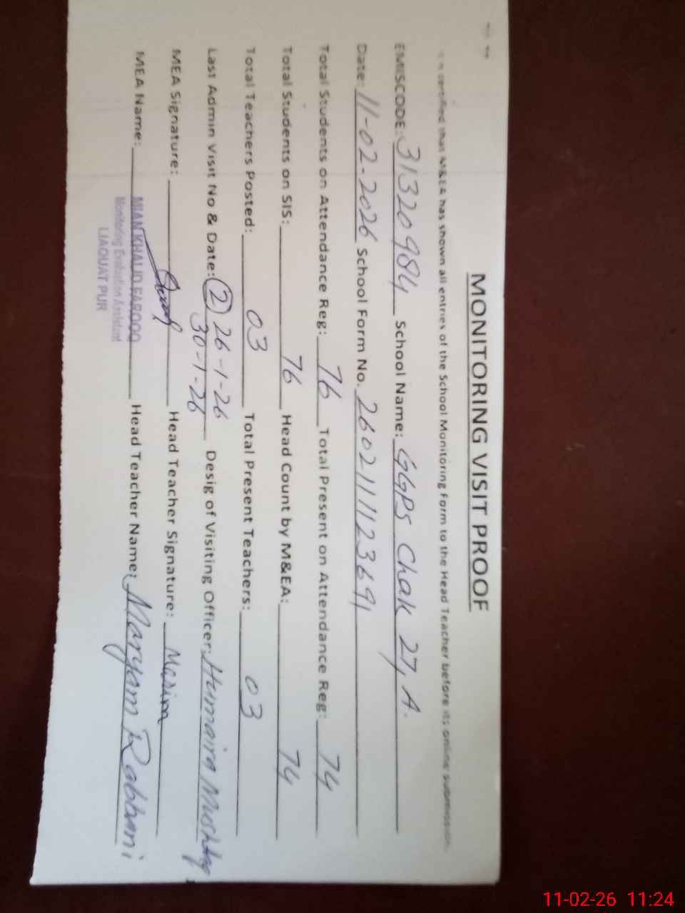 | EMIS Code: 31320984 | Name of School: GGPS CHAK 27/A | |||