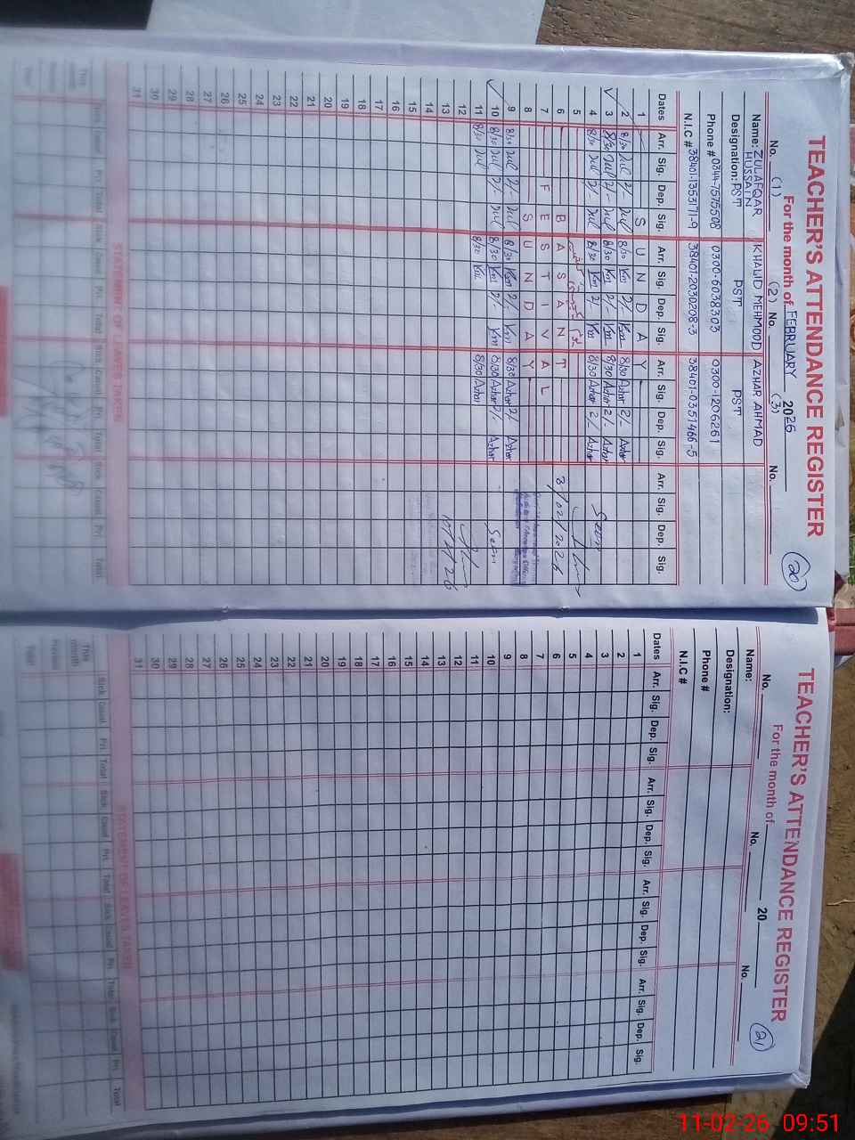 | Name: ZU**** HU**** Designation: (School Headmaster's/Headmistress's) PST Phone/Cell Number: 03**** |