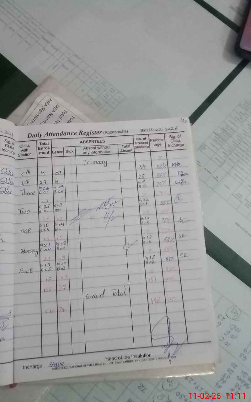 | Attendance Register | Head Teacher | MEA with School | Visit Proof |