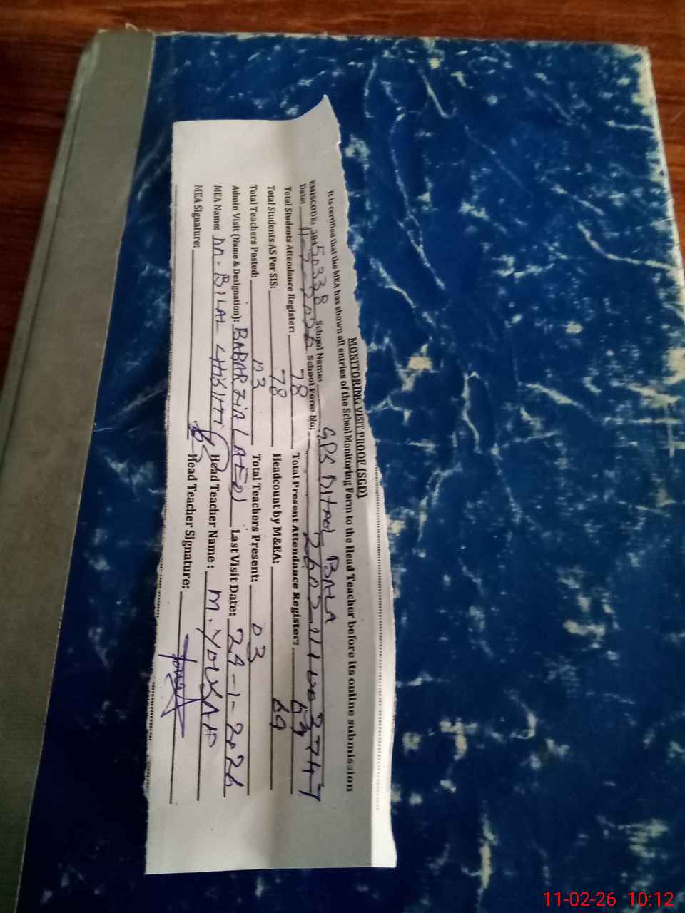 | Certified that this School was Inspected by the Undersigned MEA/DMO Today and the Information Stated Above is as Per Record. | |||||