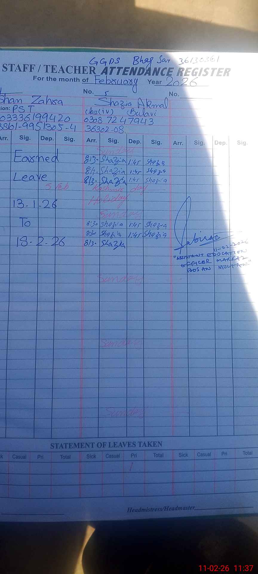 | EMIS Code: 36130361 | Name of School: GGPS BHAG SIR NEAR BAND BOSAN BARSATI MULTAN | |||