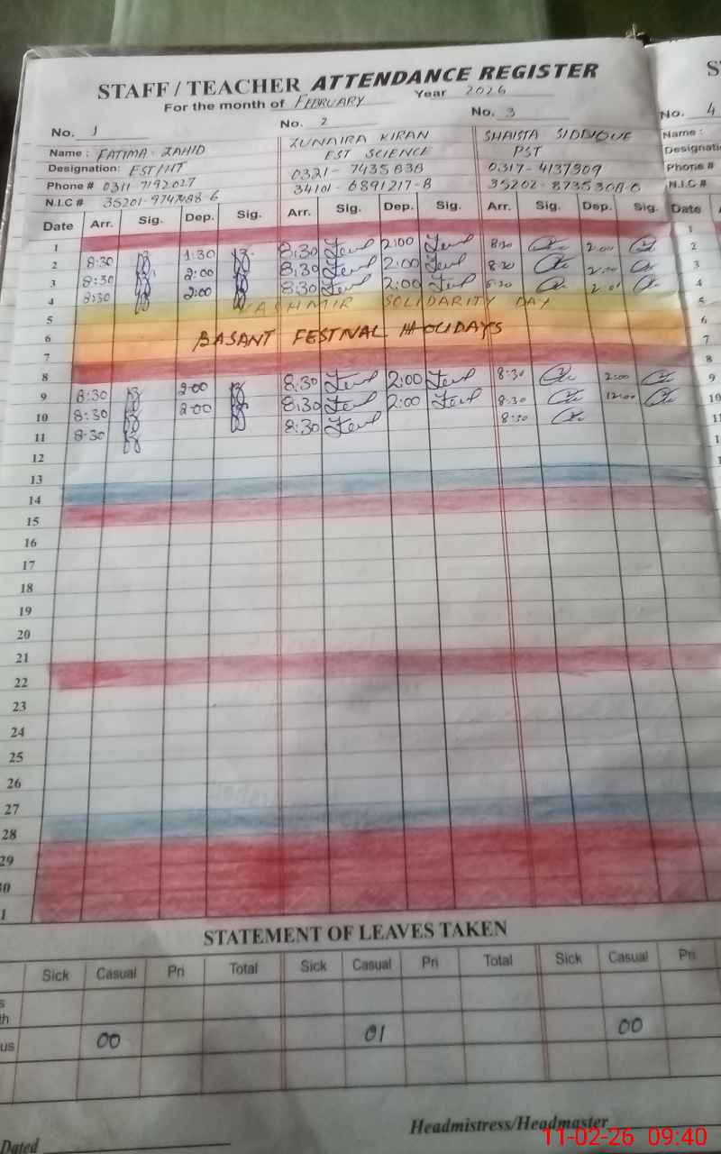 | Name: Fa**** Za**** Designation: (School Headmaster's/Headmistress's) EST Phone/Cell Number: 03**** |