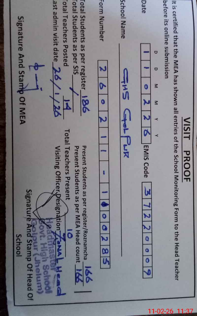 | EMIS Code: 37220009 | Name of School: GHS GOLPUR | |||