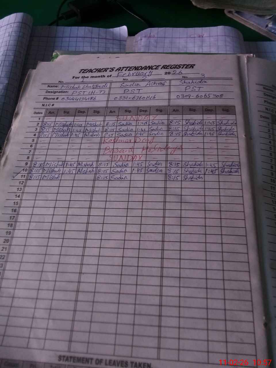 | CNIC | Full Name | Designation | R/C | Absence During Last Calender Month |