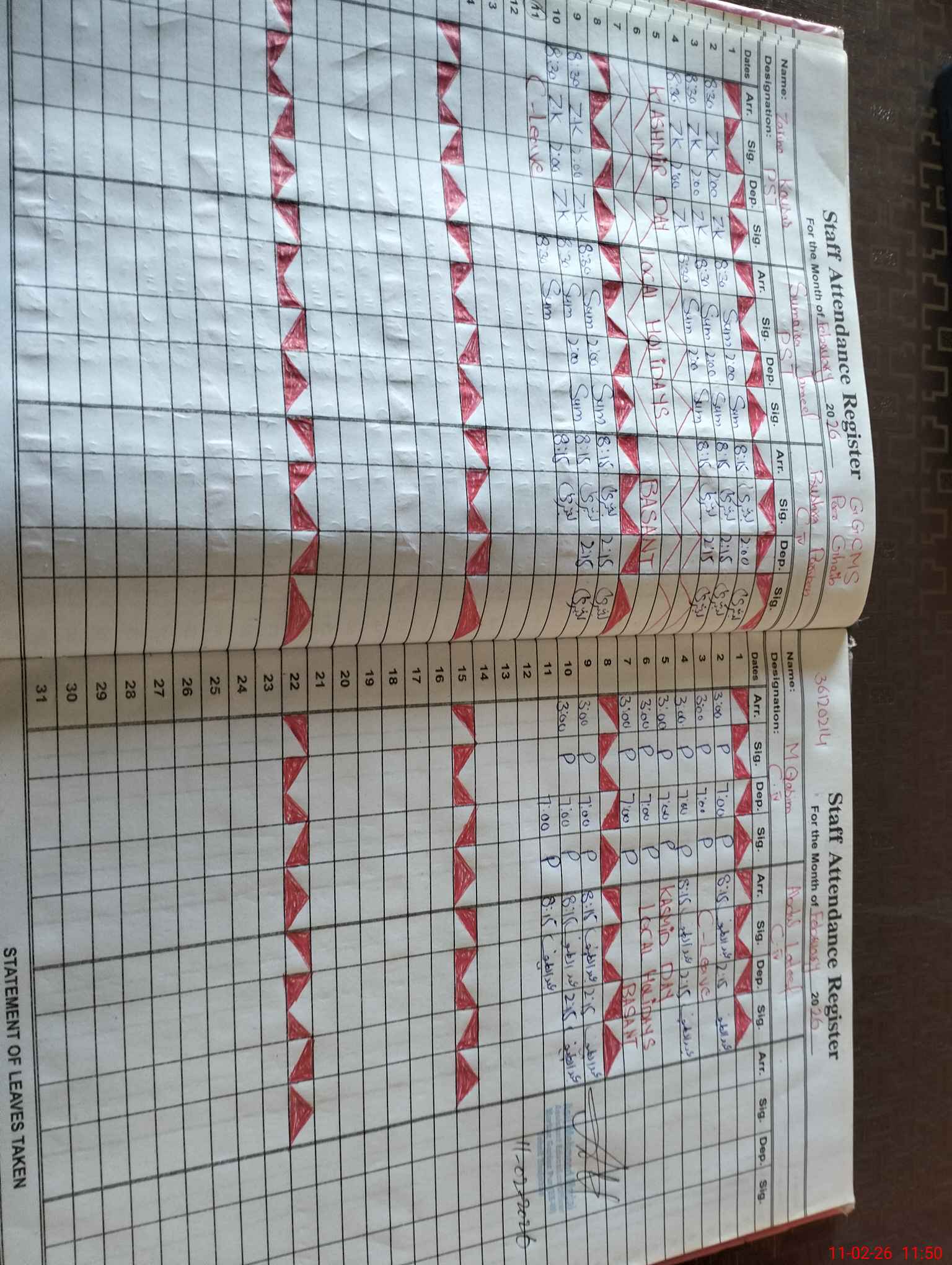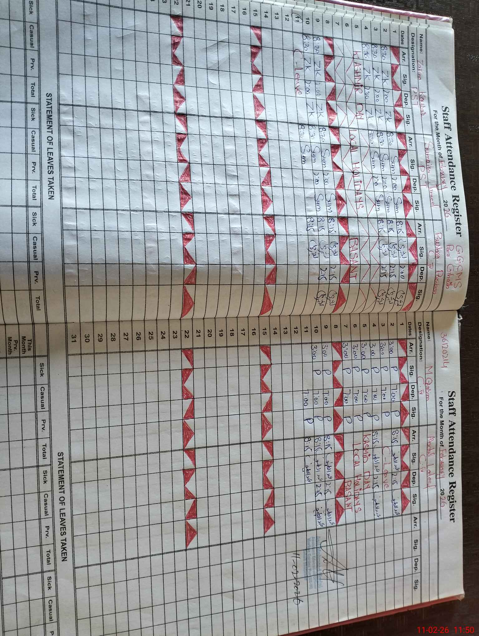 | CNIC | Full Name | Designation | R/C | Absence During Last Calender Month |