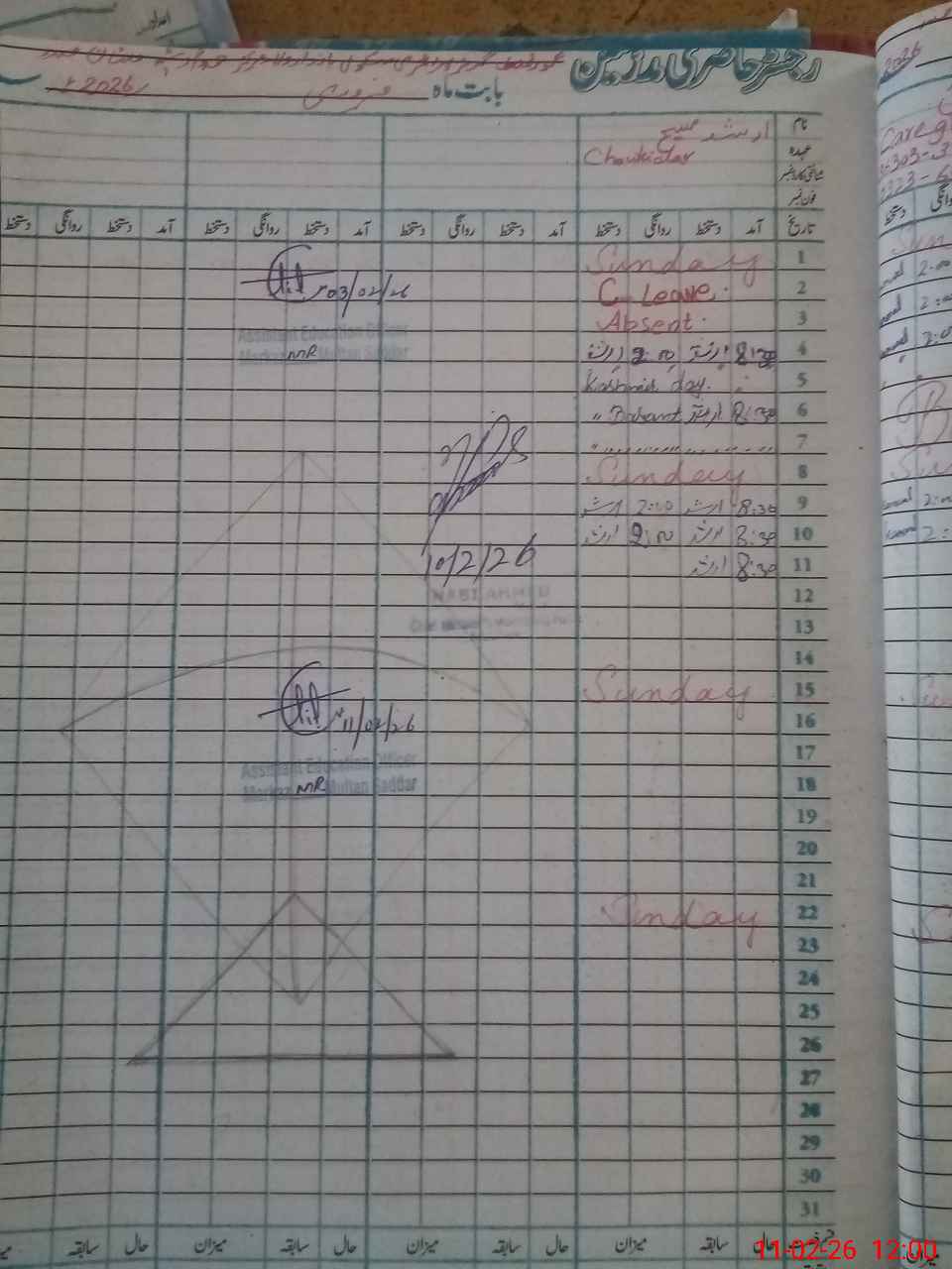 | CNIC | Full Name | Designation | R/C | Absence During Last Calender Month |
