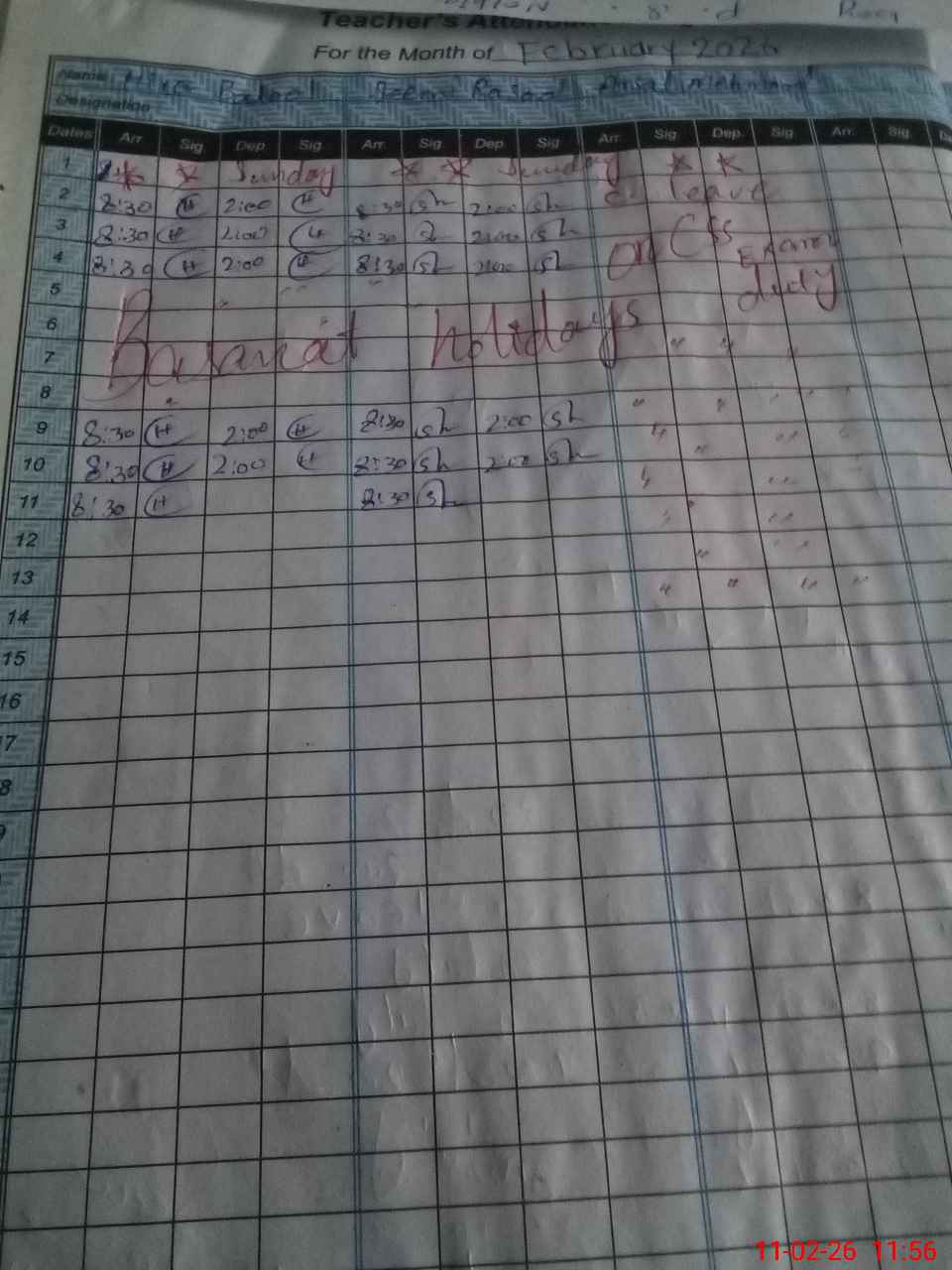 | Name: Hi**** Ba**** Designation: (School Headmaster's/Headmistress's) PST Phone/Cell Number: 03**** |