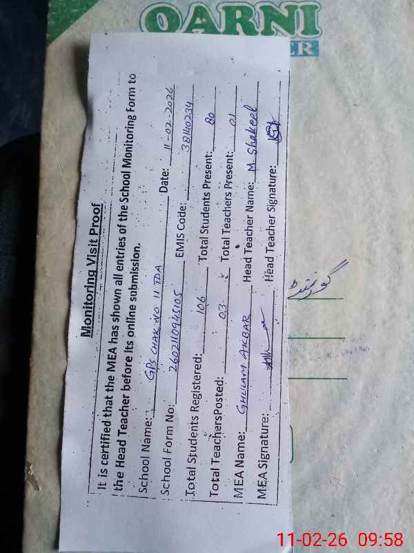 | EMIS Code: 38140234 | Name of School: GPS CHAK NO 11 TDA | |||