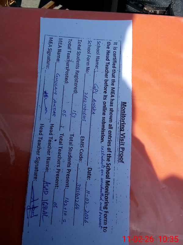 | Attendance Register | Head Teacher | MEA with School | Visit Proof |