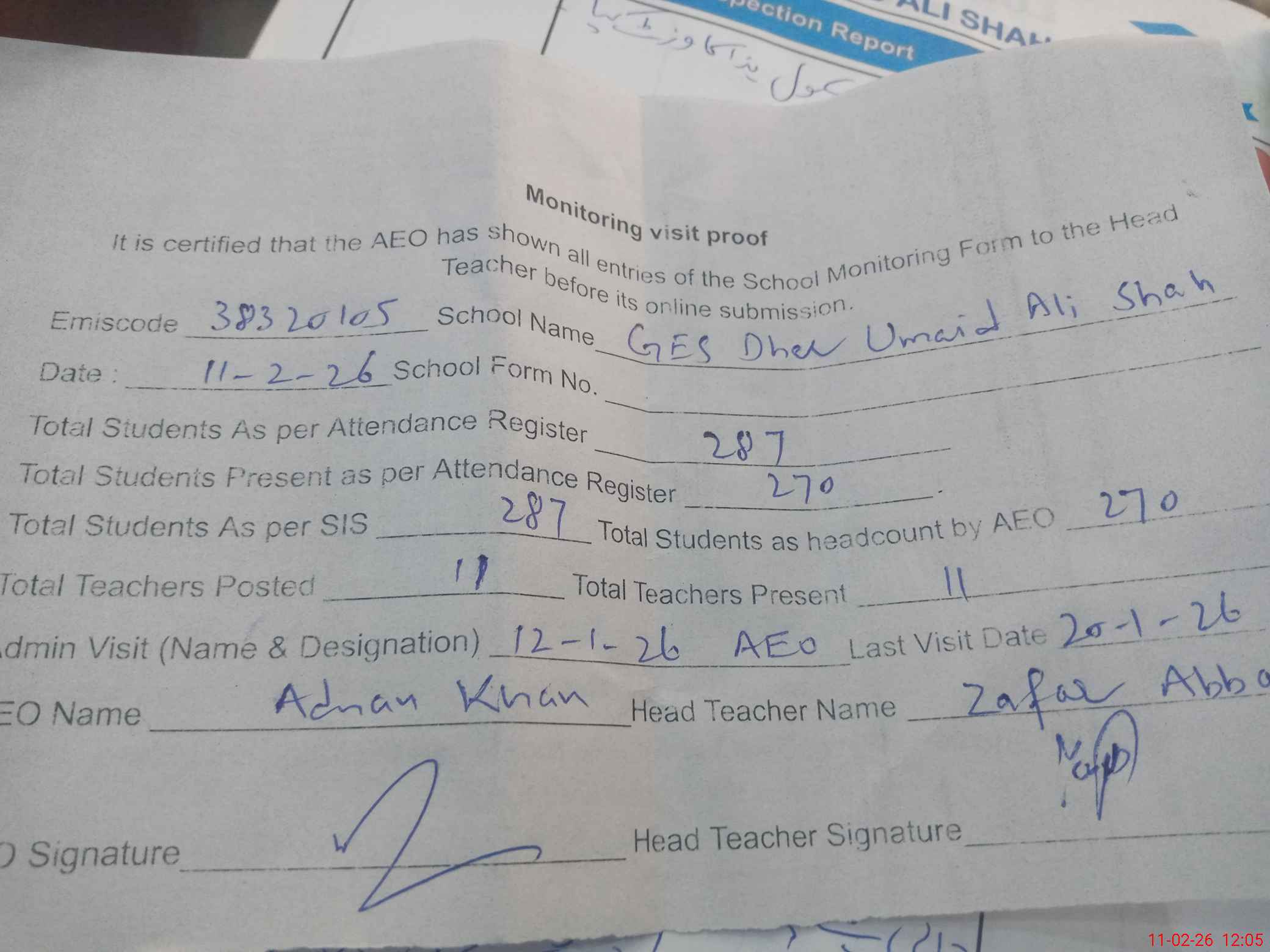 | EMIS Code: 38320105 | Name of School: GES DHER UMAID ALI SHAH | |||