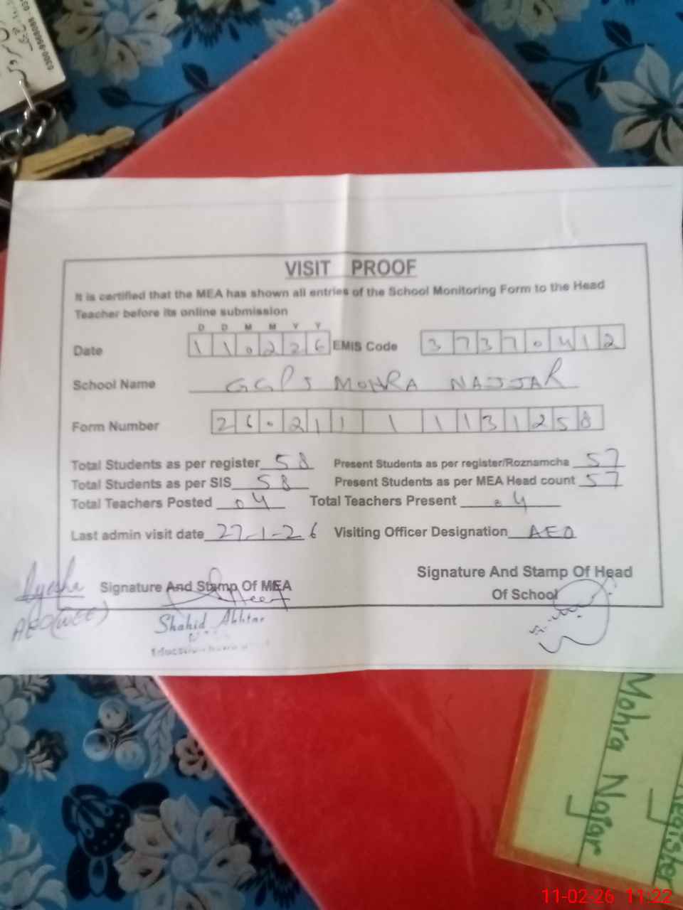 | EMIS Code: 37370412 | Name of School: GGPS MOHRA NAJAR | |||