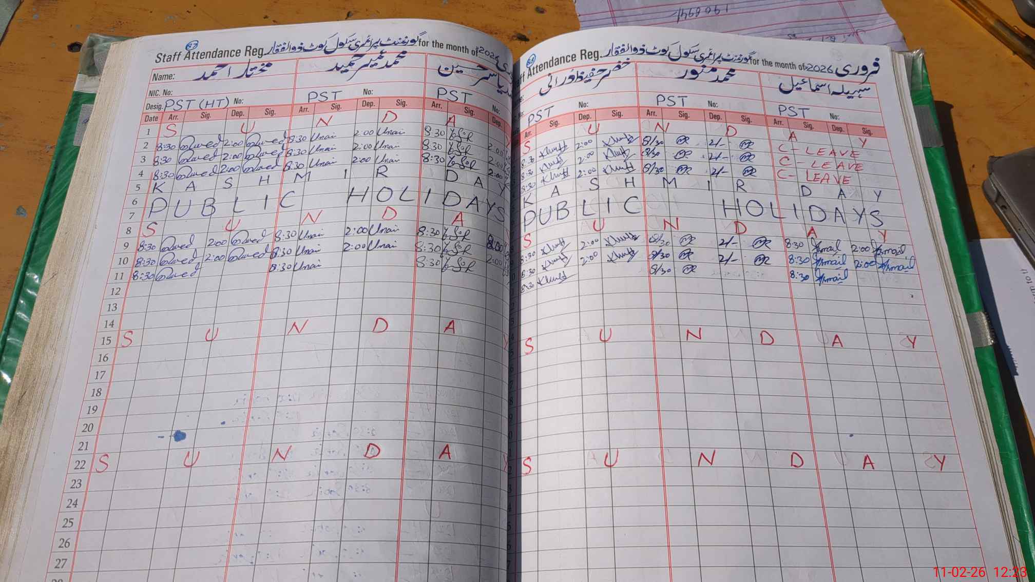 | CNIC | Full Name | Designation | R/C | Absence During Last Calender Month |