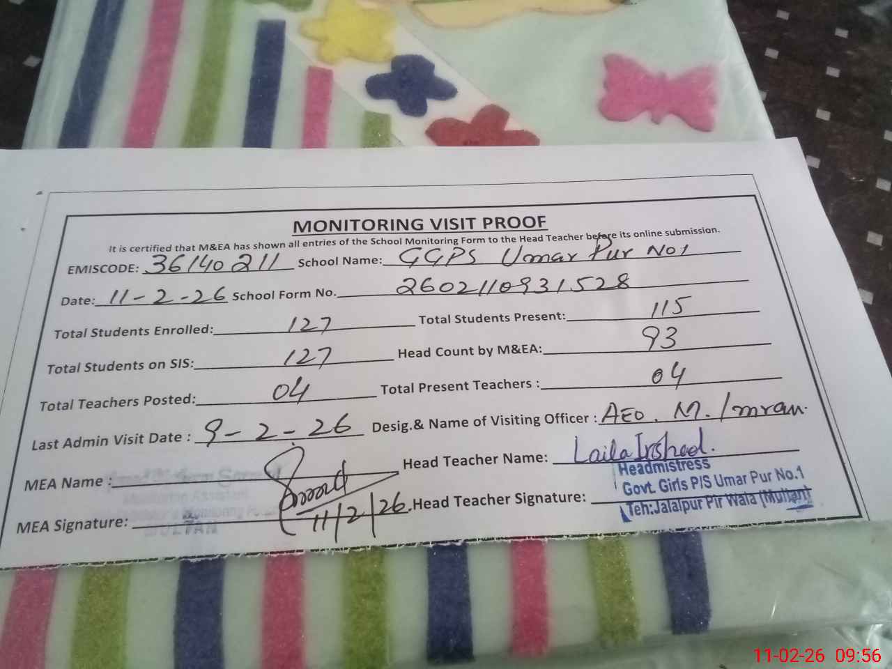 | EMIS Code: 36140211 | Name of School: GGPS UMER PUR 1 | |||