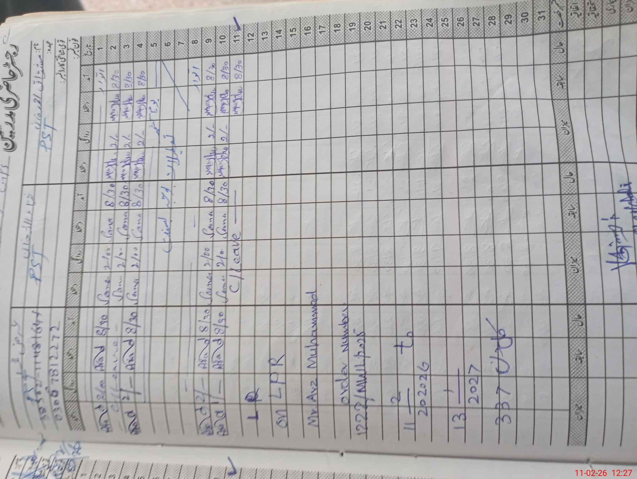 | Name: MU**** AH**** KH**** Designation: (School Headmaster's/Headmistress's) PST Phone/Cell Number: 03**** |