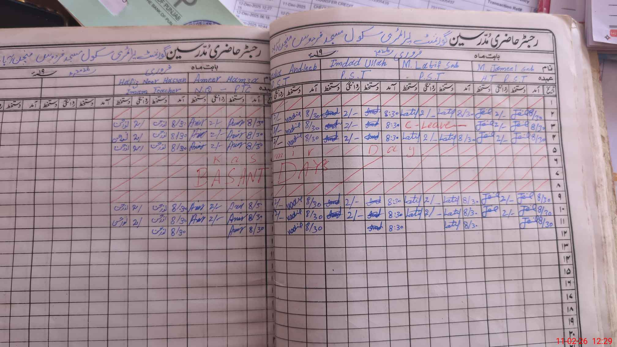 | CNIC | Full Name | Designation | R/C | Absence During Last Calender Month |