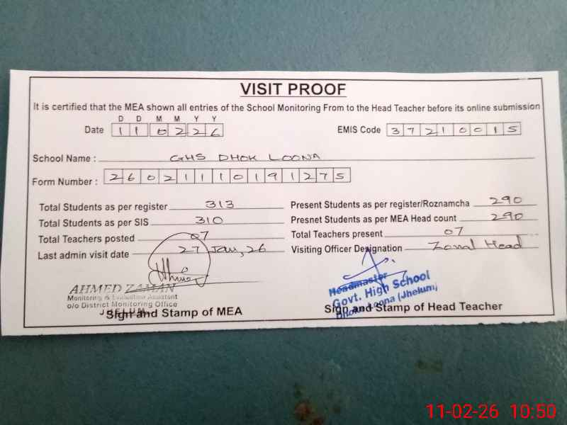 | EMIS Code: 37210015 | Name of School: GHS DHOK LOONA | |||