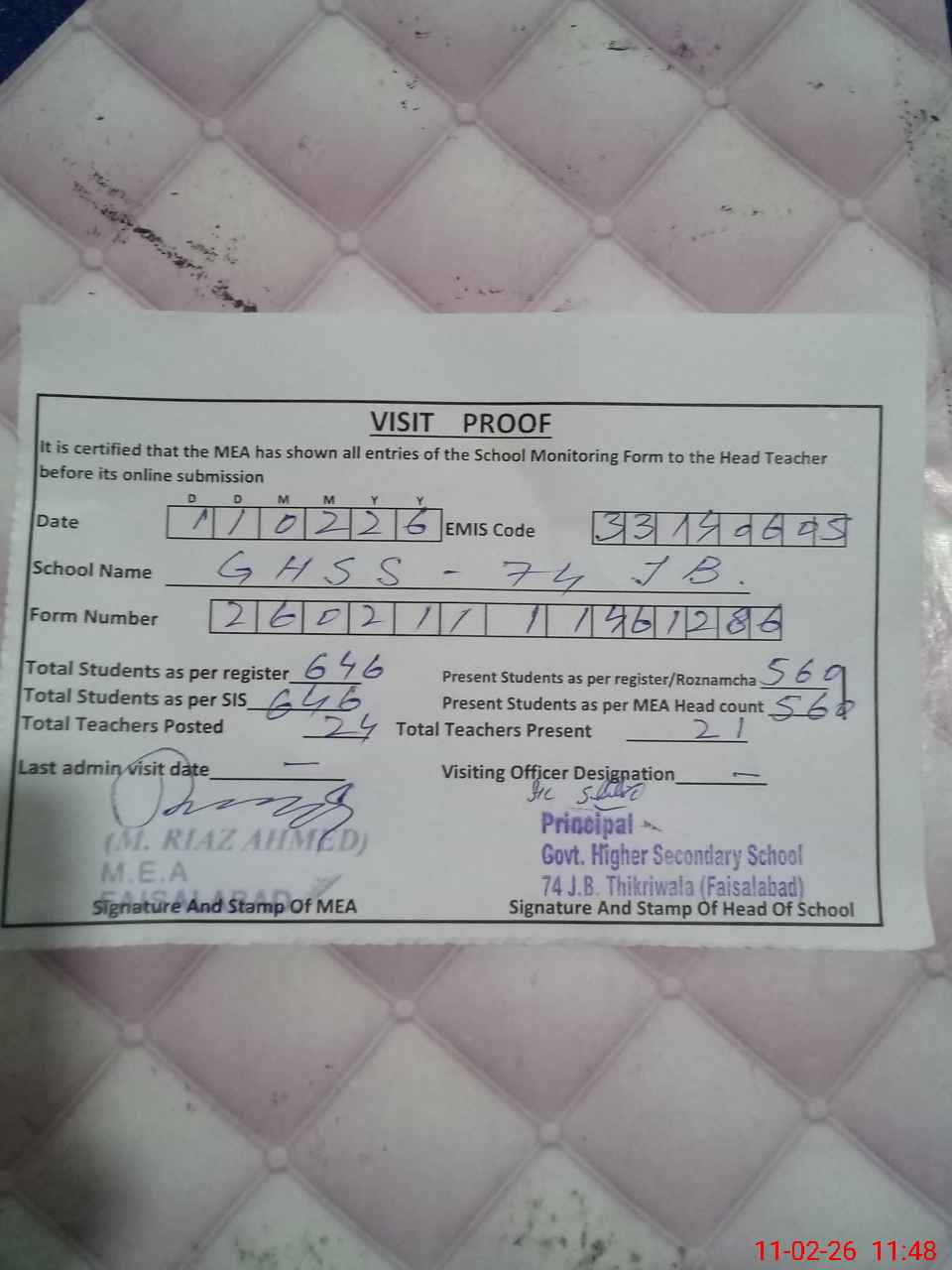 | EMIS Code: 33140605 | Name of School: GHSS CHAK 74 JB THIKRIWALA FSD | |||