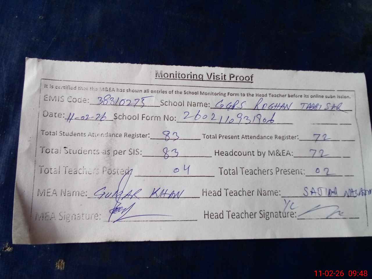 | EMIS Code: 38310275 | Name of School: GGPS ROGHAN P/O TABBI SAR | |||