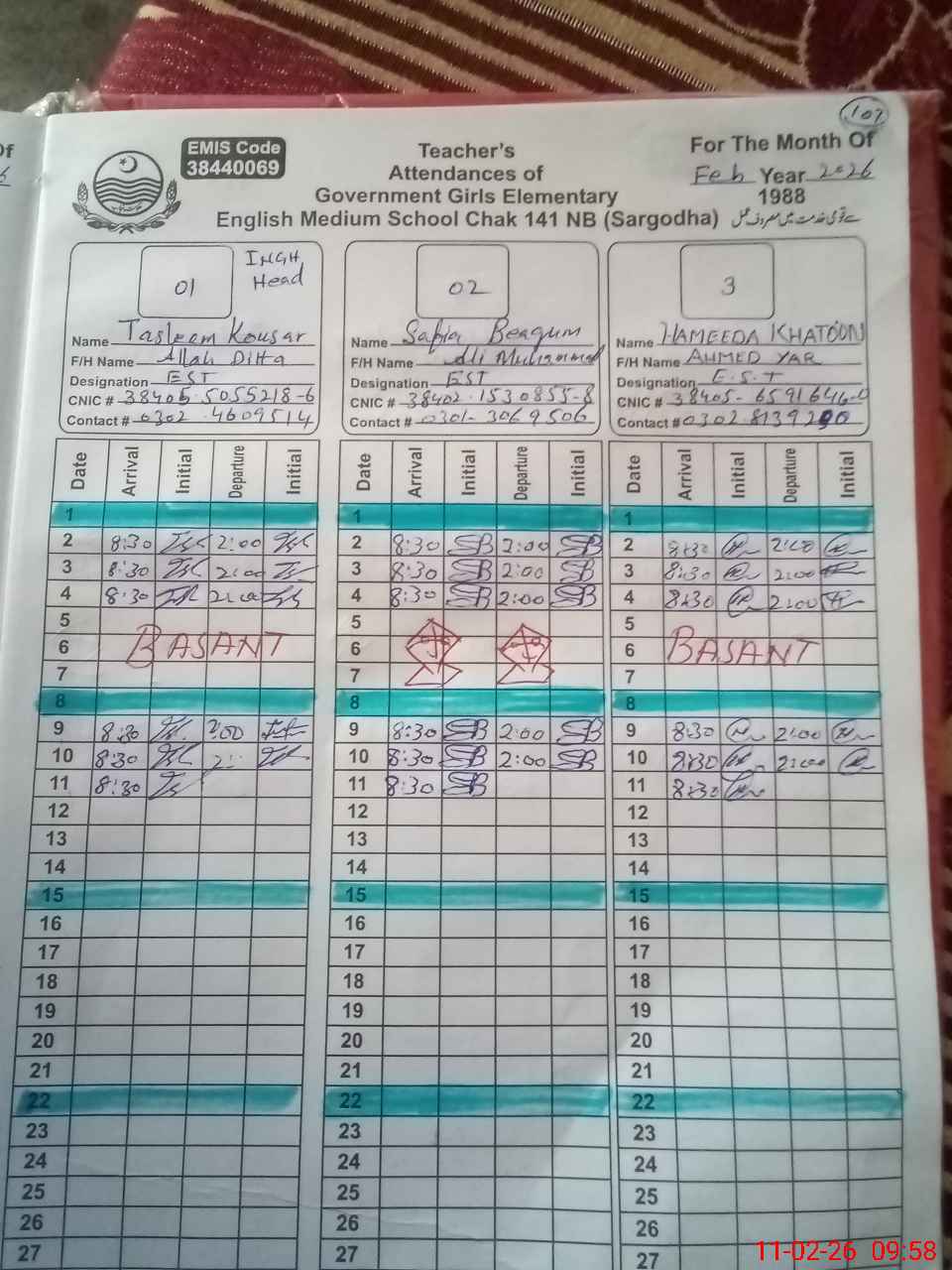 | Name: Ta**** Ko**** Designation: (School Headmaster's/Headmistress's) Est G Phone/Cell Number: 03**** |