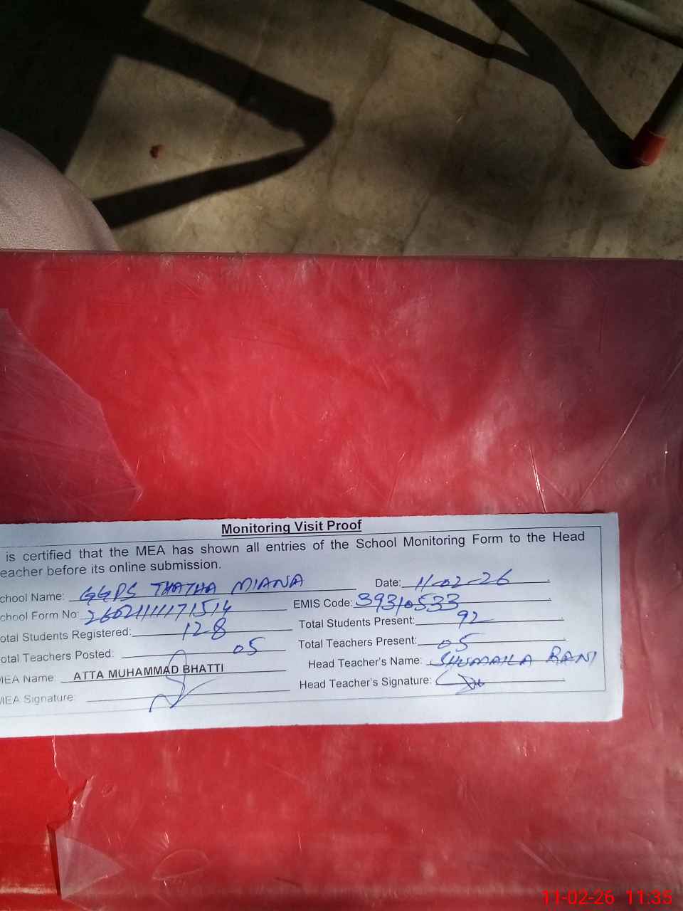 | EMIS Code: 39310533 | Name of School: GGPS THATHA MIANA | |||