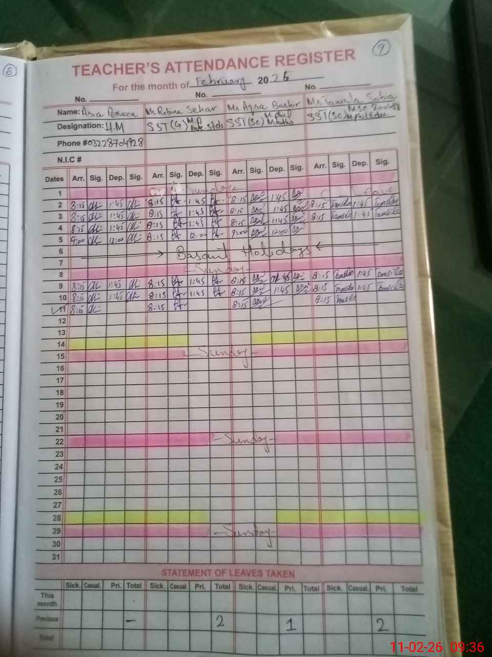 | 54**** | Ur**** Ak**** | PST Science/Maths | Regular | 0 | 0 | 31 | 0 | 0 | 0 | 0 | 0 | 0 | Absent (Un-Authorized) |