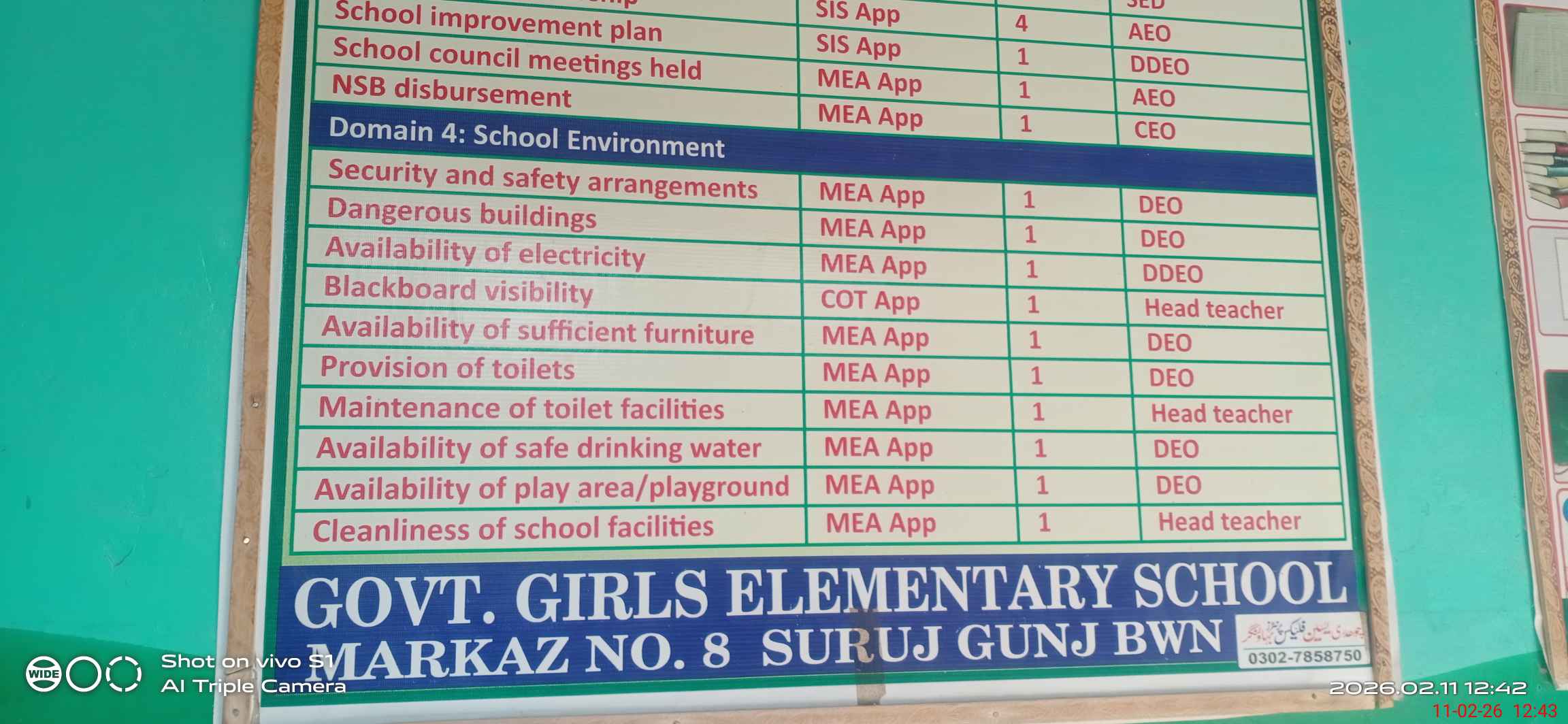 | Certified that this School was Inspected by the Undersigned MEA/DMO Today and the Information Stated Above is as Per Record. | |||||