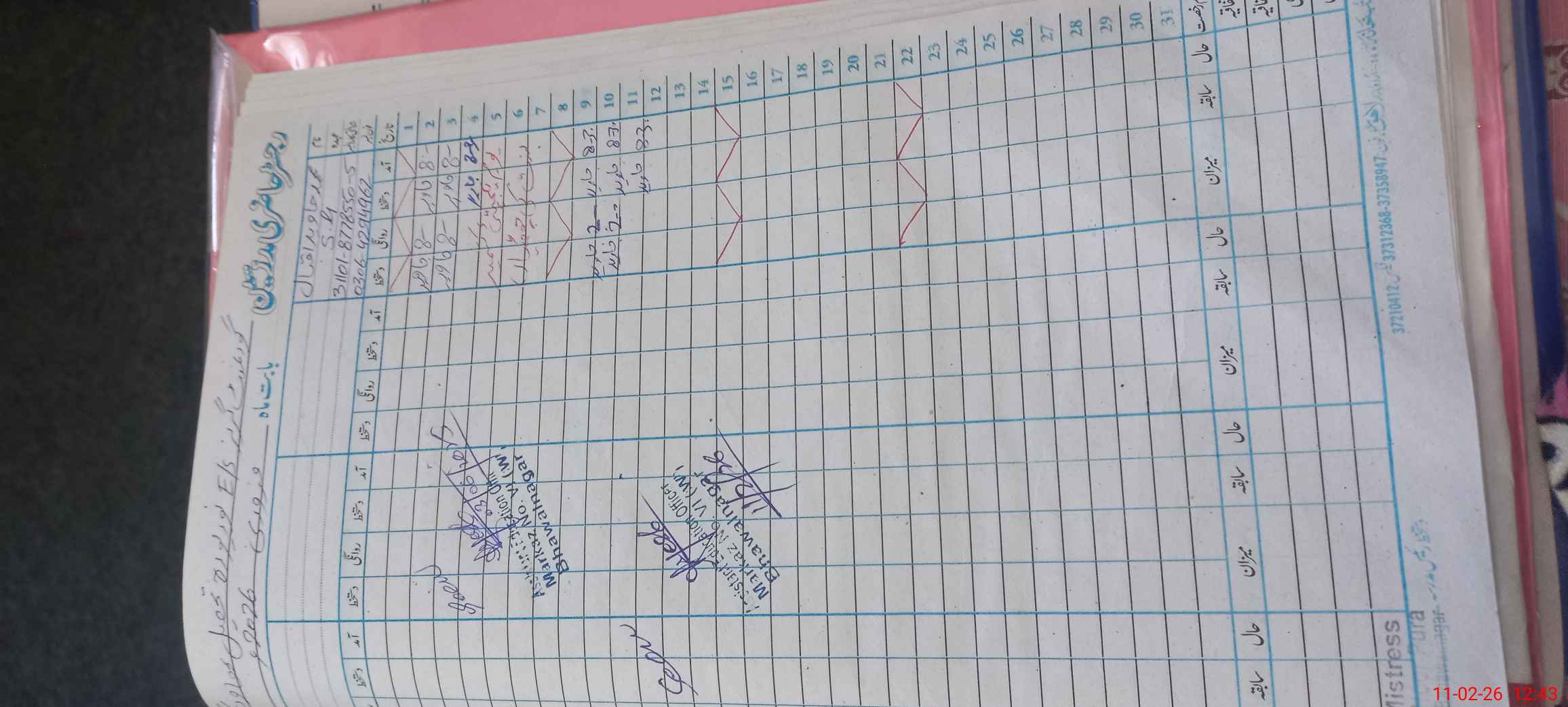 | CNIC | Full Name | Designation | R/C | Absence During Last Calender Month |