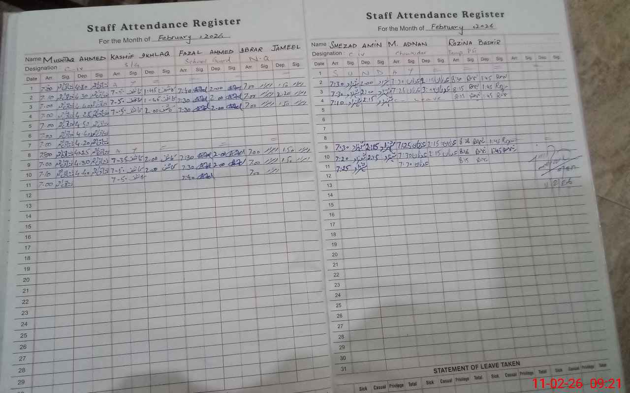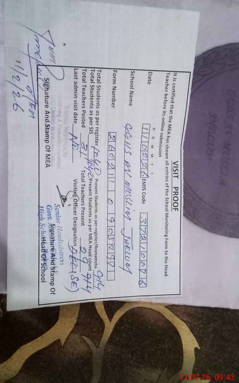 | Attendance Register | Head Teacher | MEA with School | Visit Proof |