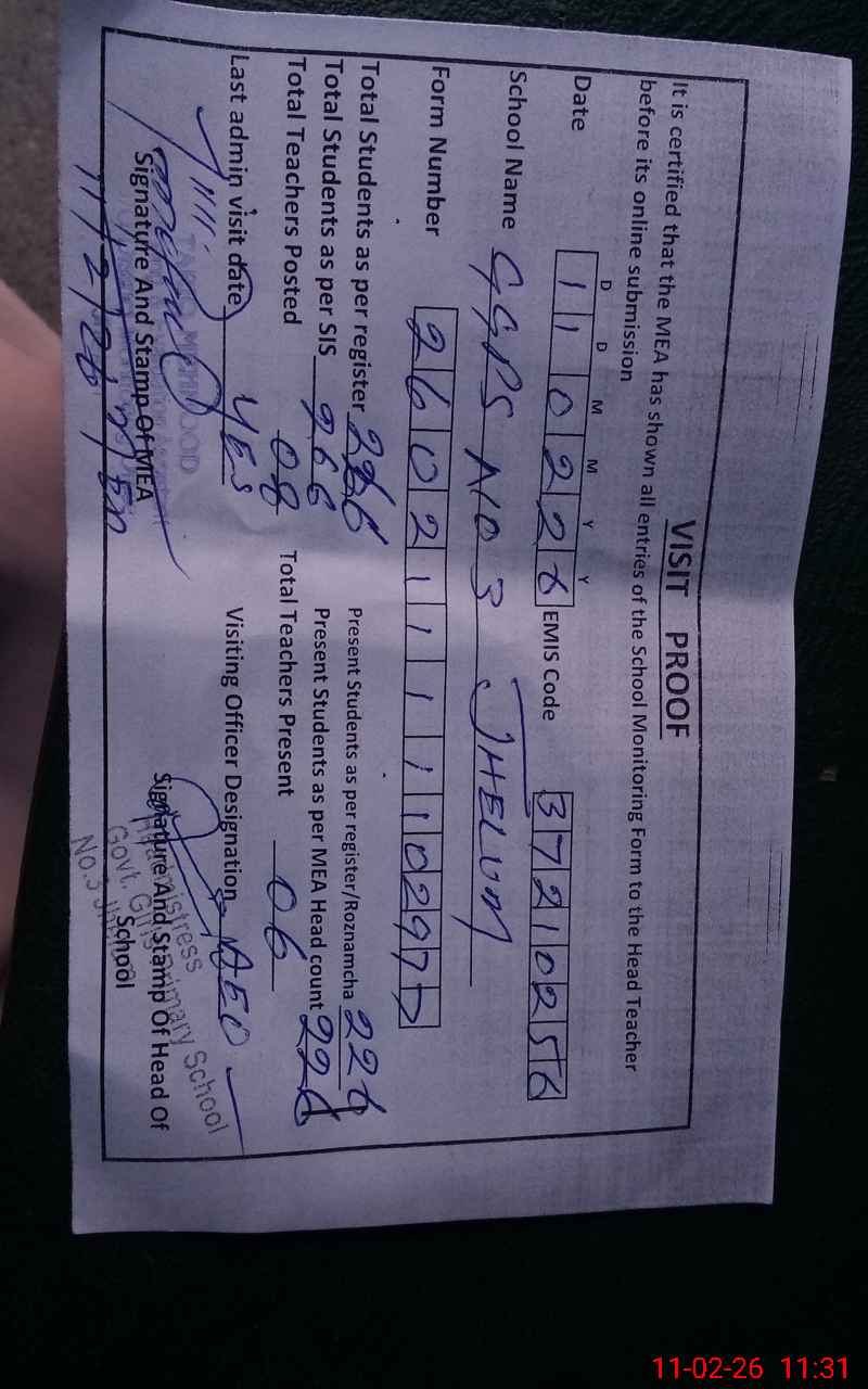| EMIS Code: 37210256 | Name of School: GGPS NO. 3 JEHLUM | |||