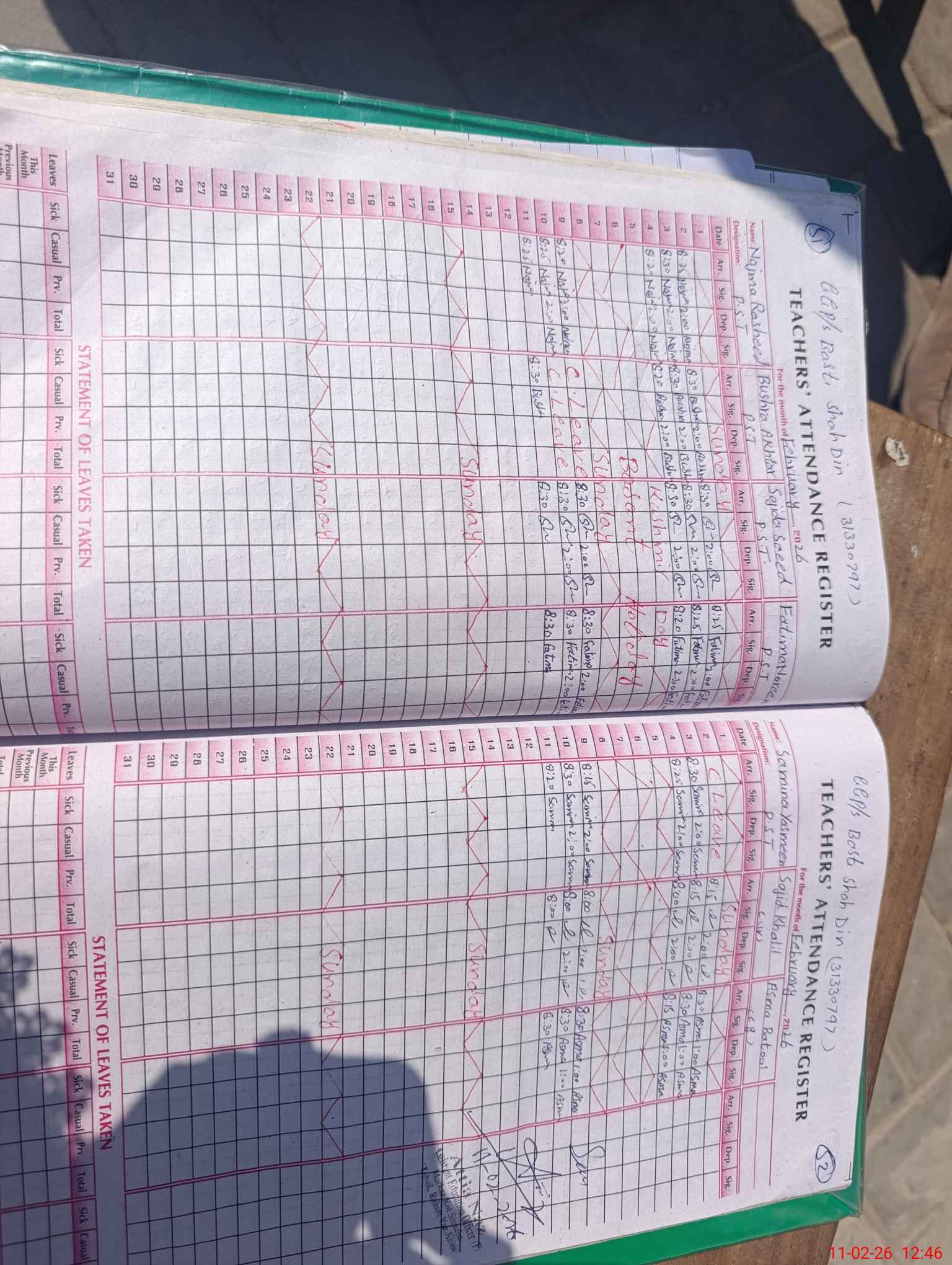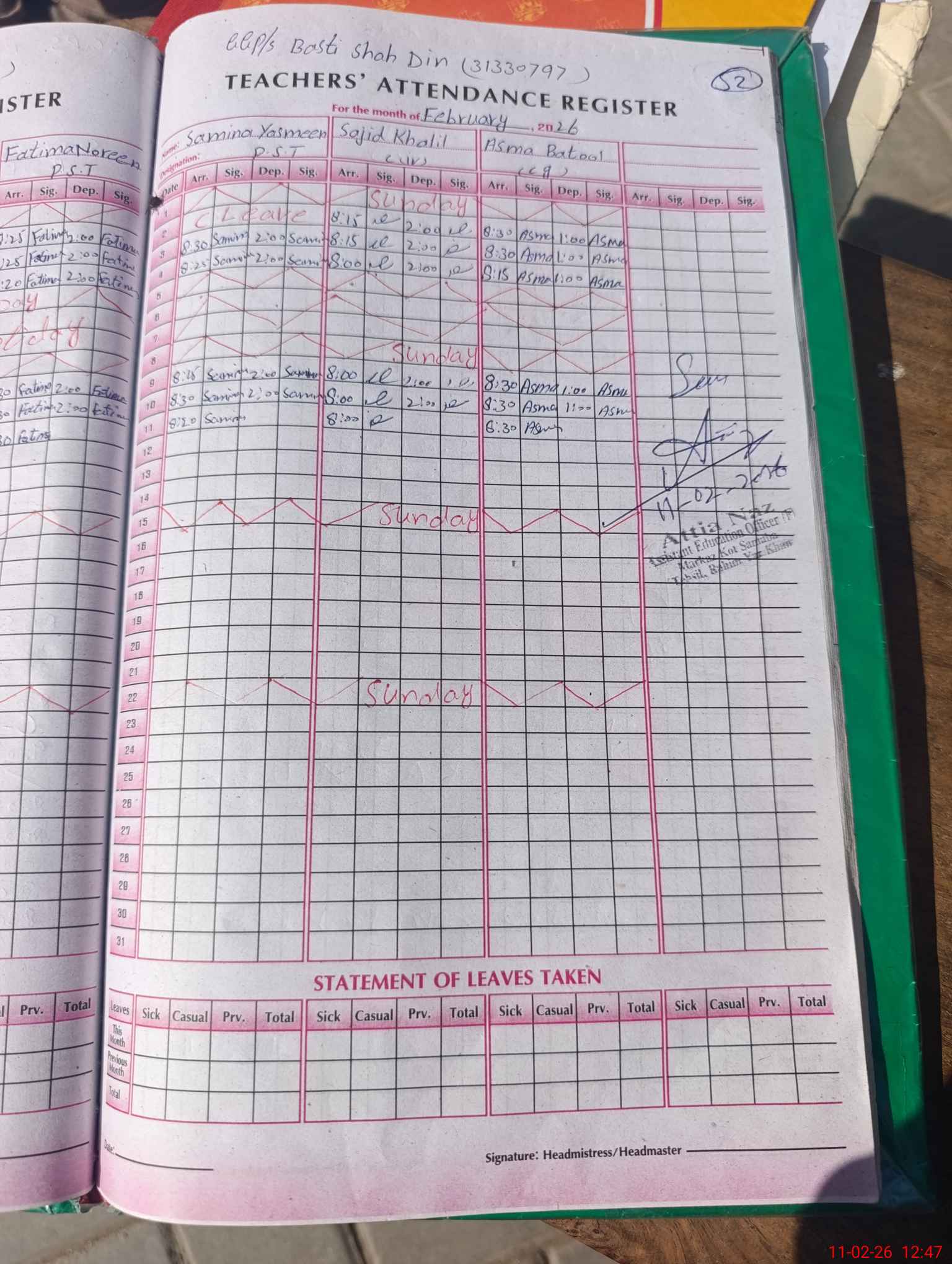 | Name: Na**** Ra**** Designation: (School Headmaster's/Headmistress's) PST Phone/Cell Number: 03**** |