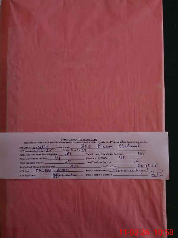 | EMIS Code: 38410150 | Name of School: GPS PURANA BHALWAL | |||