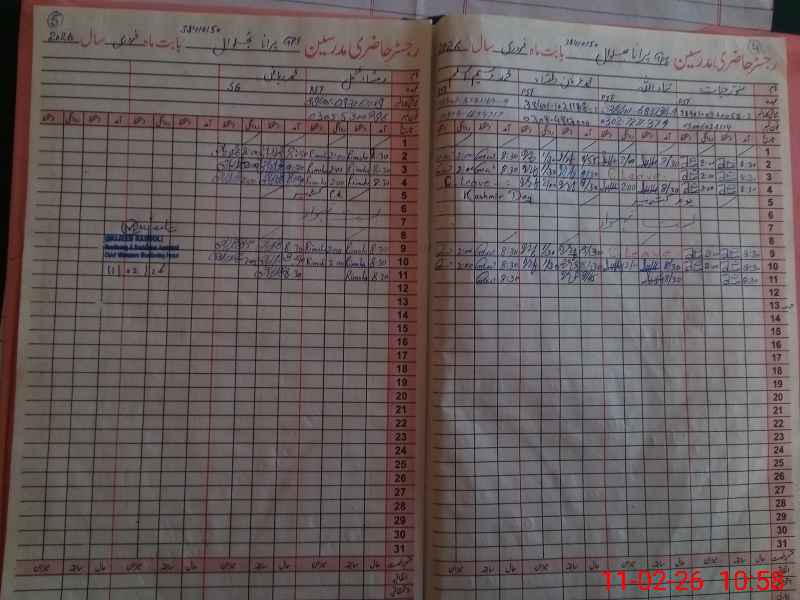 | CNIC | Full Name | Designation | R/C | Absence During Last Calender Month |