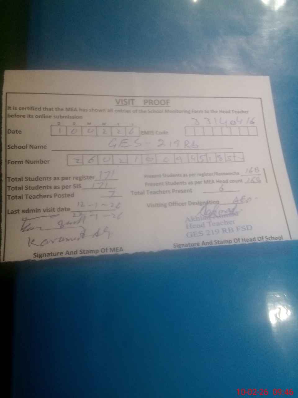 | EMIS Code: 33140416 | Name of School: GES 219 RB | |||