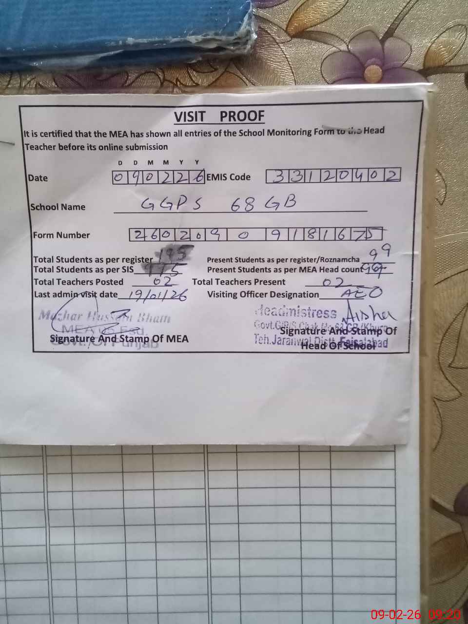 | EMIS Code: 33120402 | Name of School: GGPS CHAK 68 GB KUND JARANWLA | |||