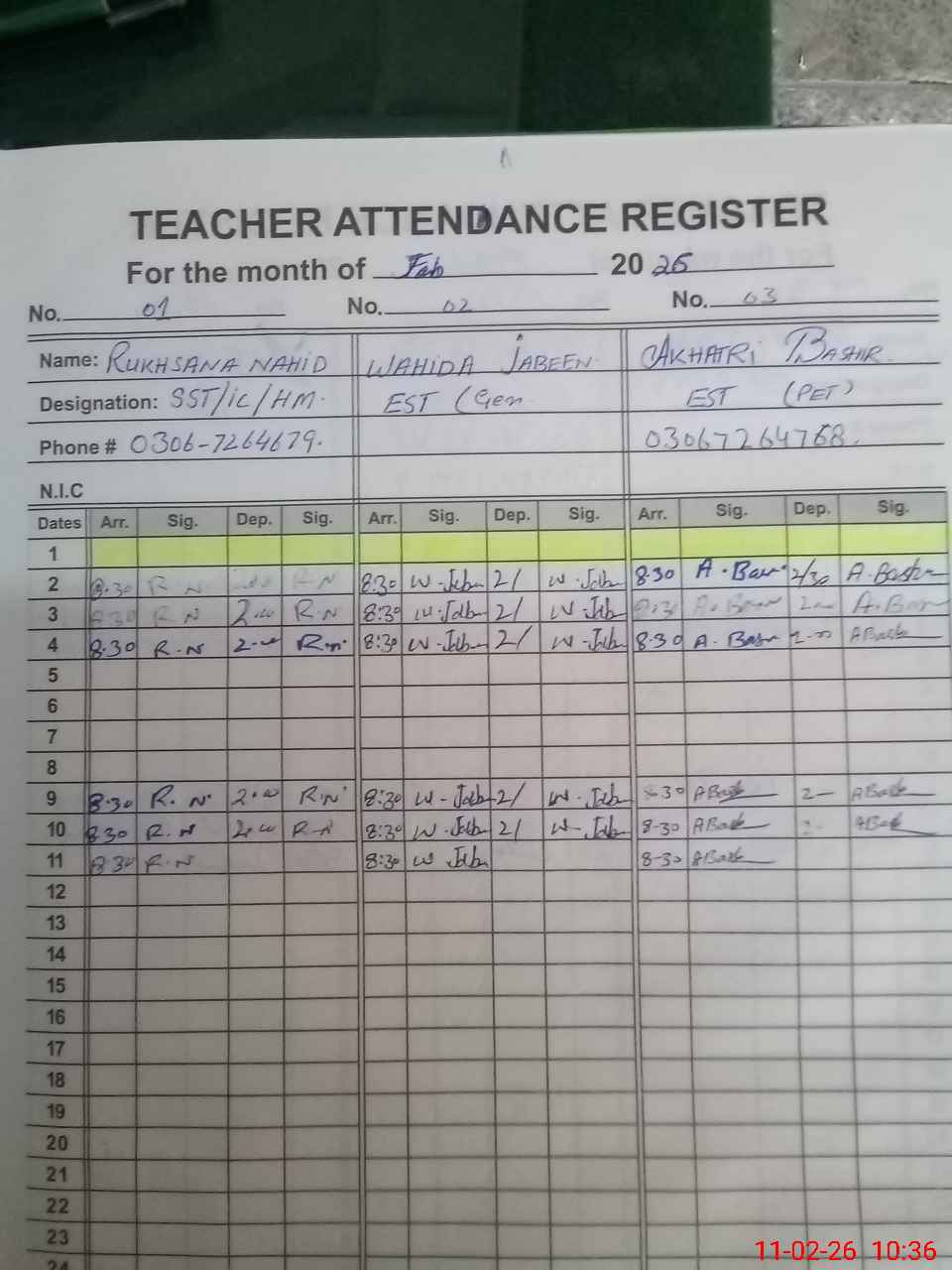 | Name: RU**** NA**** Designation: (School Headmaster's/Headmistress's) H M( SST ) Phone/Cell Number: 03**** |