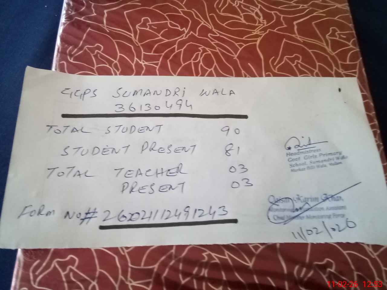 | Name: SH**** PA**** Designation: (School Headmaster's/Headmistress's) PST Phone/Cell Number: 03**** |