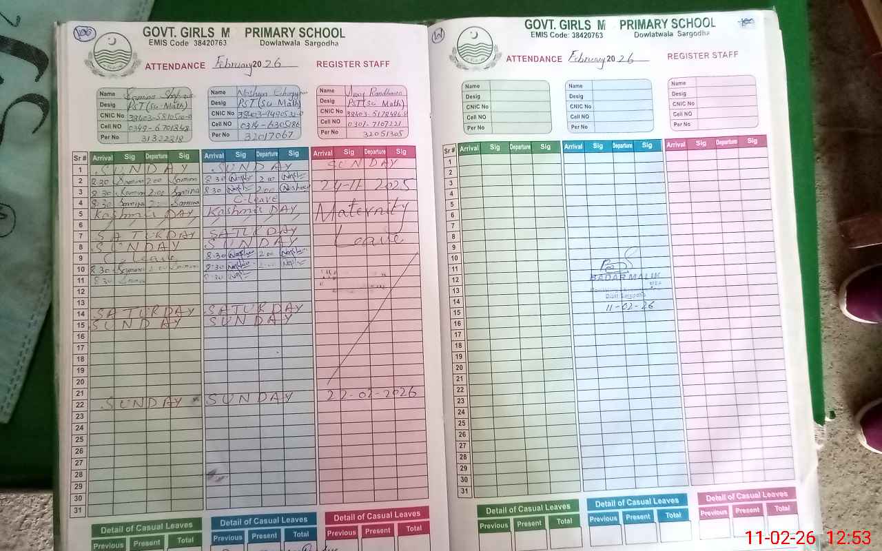 | 38**** | Ar**** Ra**** | PST Science/Maths | Regular | 0 | 0 | 0 | 0 | 0 | 0 | 0 | 0 | 0 | Maternity |