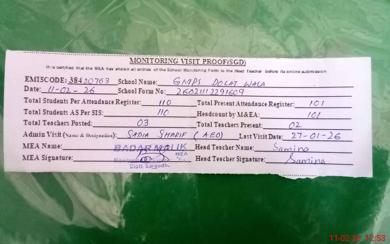 | EMIS Code: 38420763 | Name of School: GMPS DOLAT WALA | |||