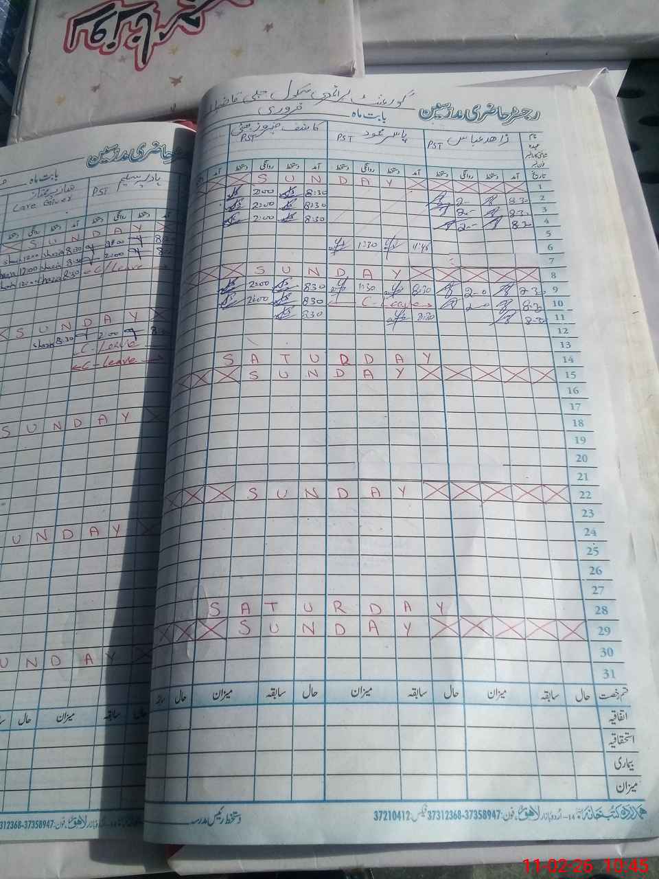 | CNIC | Full Name | Designation | R/C | Absence During Last Calender Month |