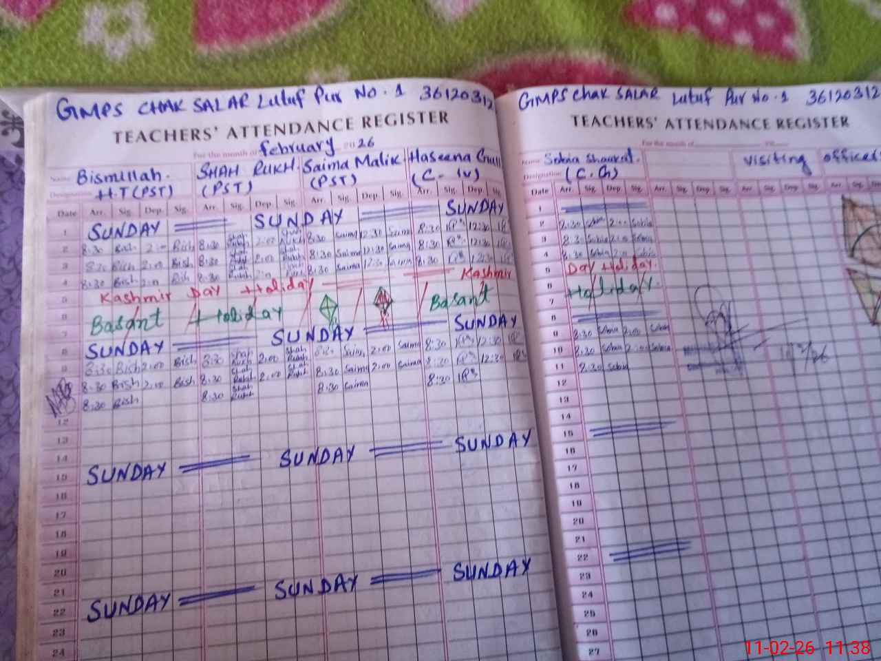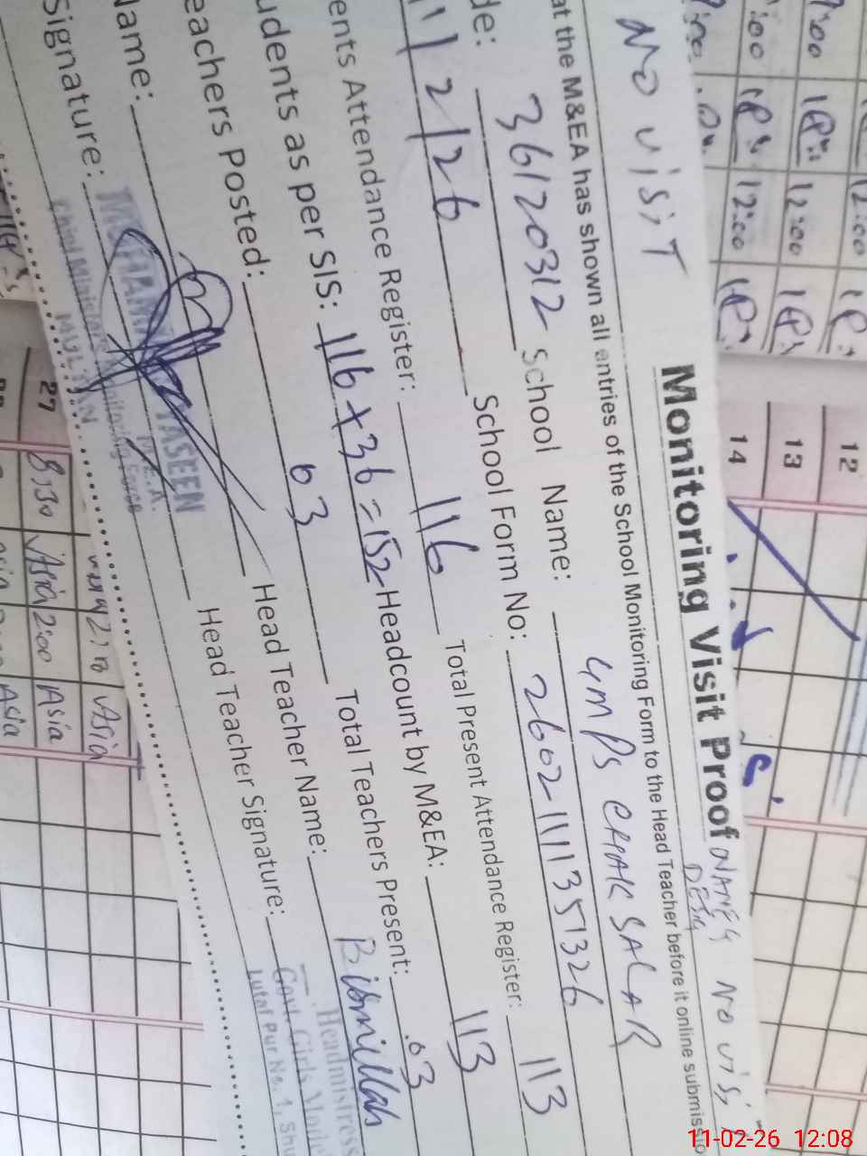 | Attendance Register | Head Teacher | MEA with School | Visit Proof |